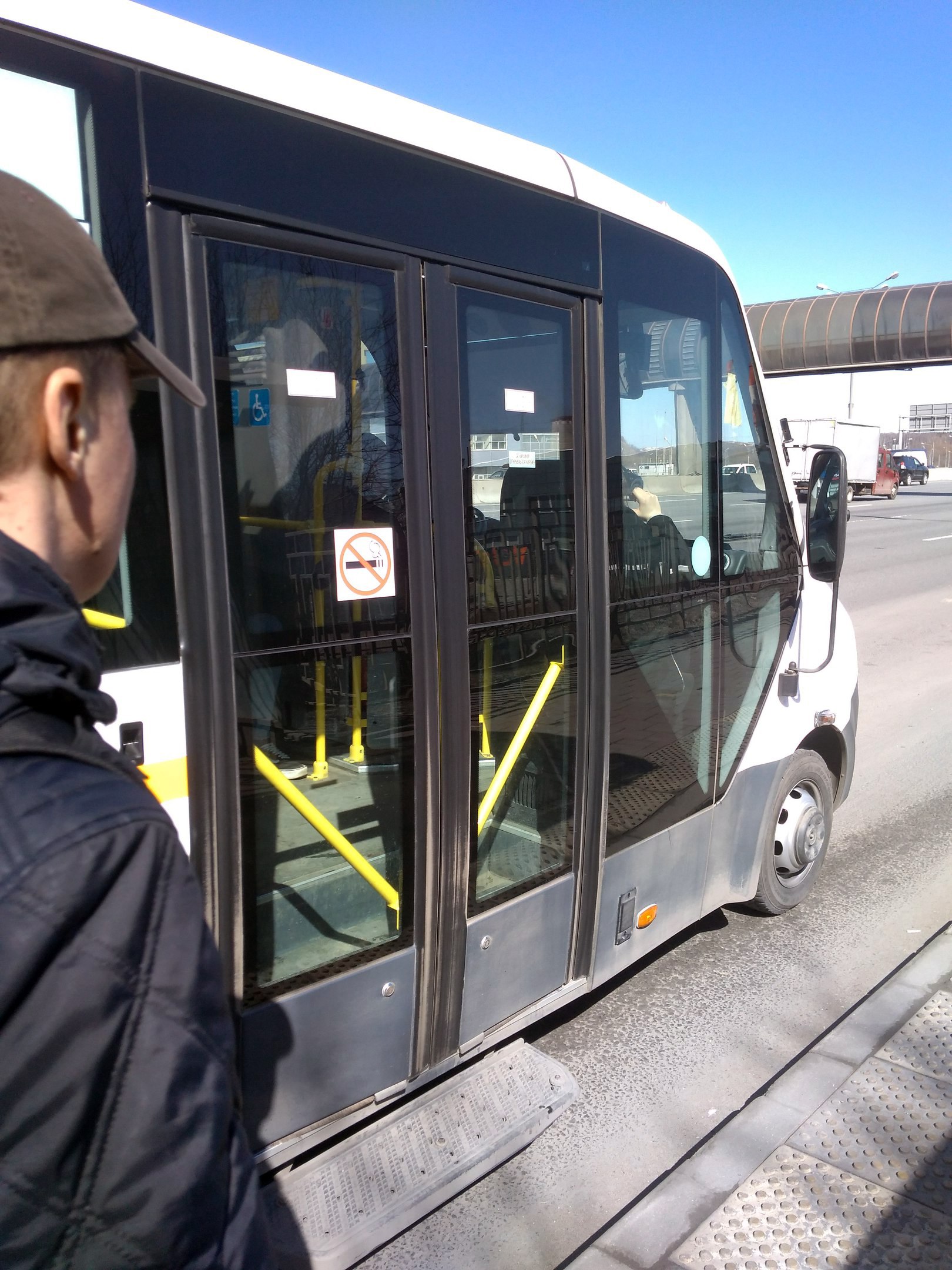 У этой маршрутки был определённый плюс — задняя площадка. Все места были, конечно, заняты. Но в конце салона, как раз на задней площадке, мы отлично вписались. На остановке «Новобутаково» в 11:28 мы покинули маршрутку №451.
